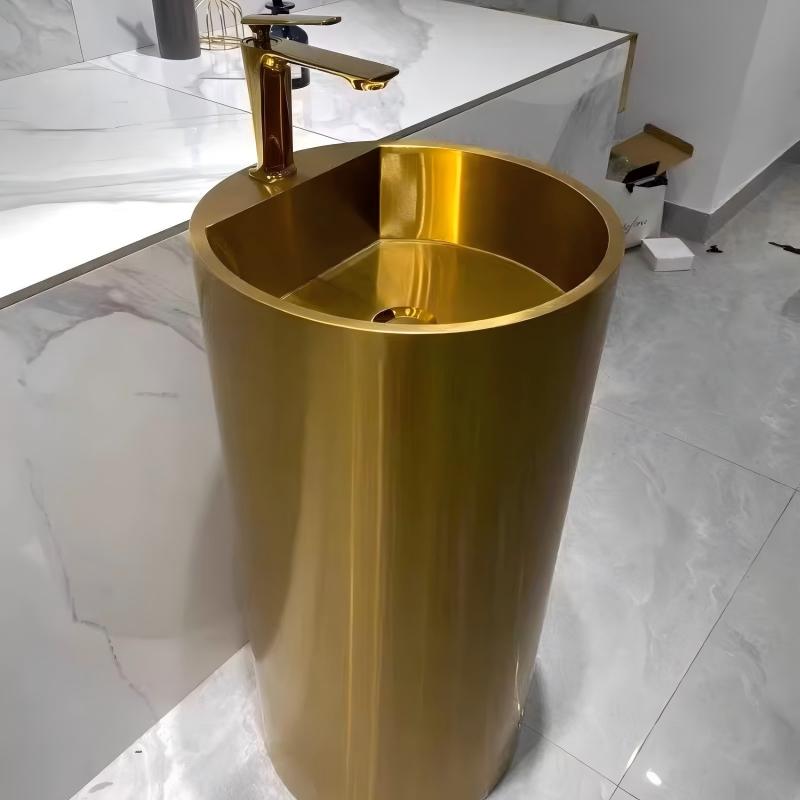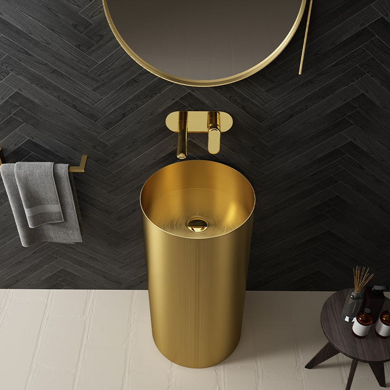 Customizable Color 304 Stainless Steel Round Pedestal Sink for Hotel and Home Use